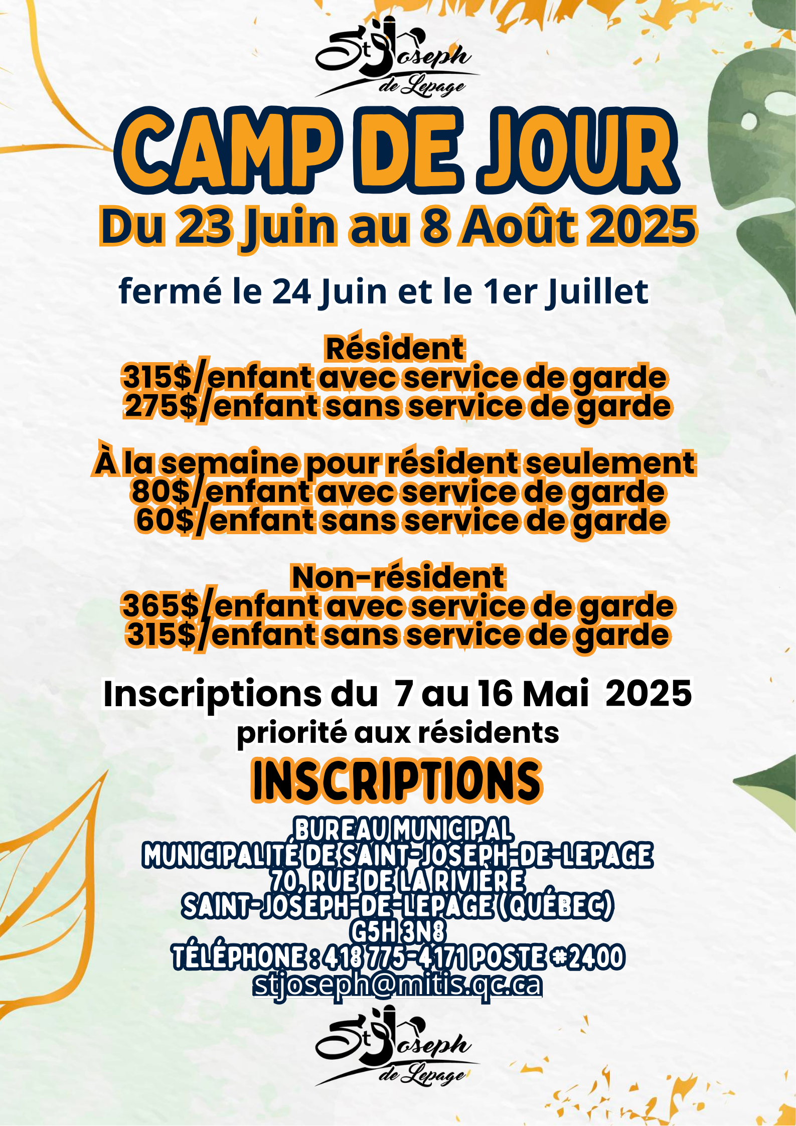 Fiche d'inscription camp jour 2025