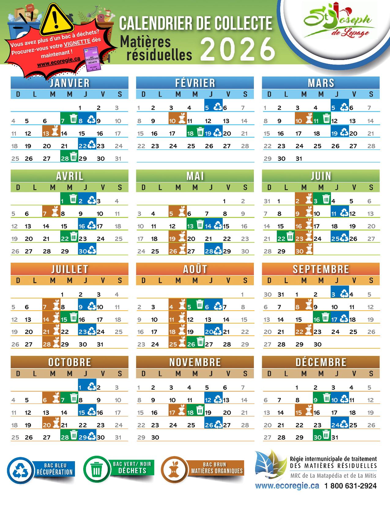 Nous vous remercions de votre collaboration et vous invitons à consulter le calendrier municipal ou le site web pour plus de détails sur les dates précises.